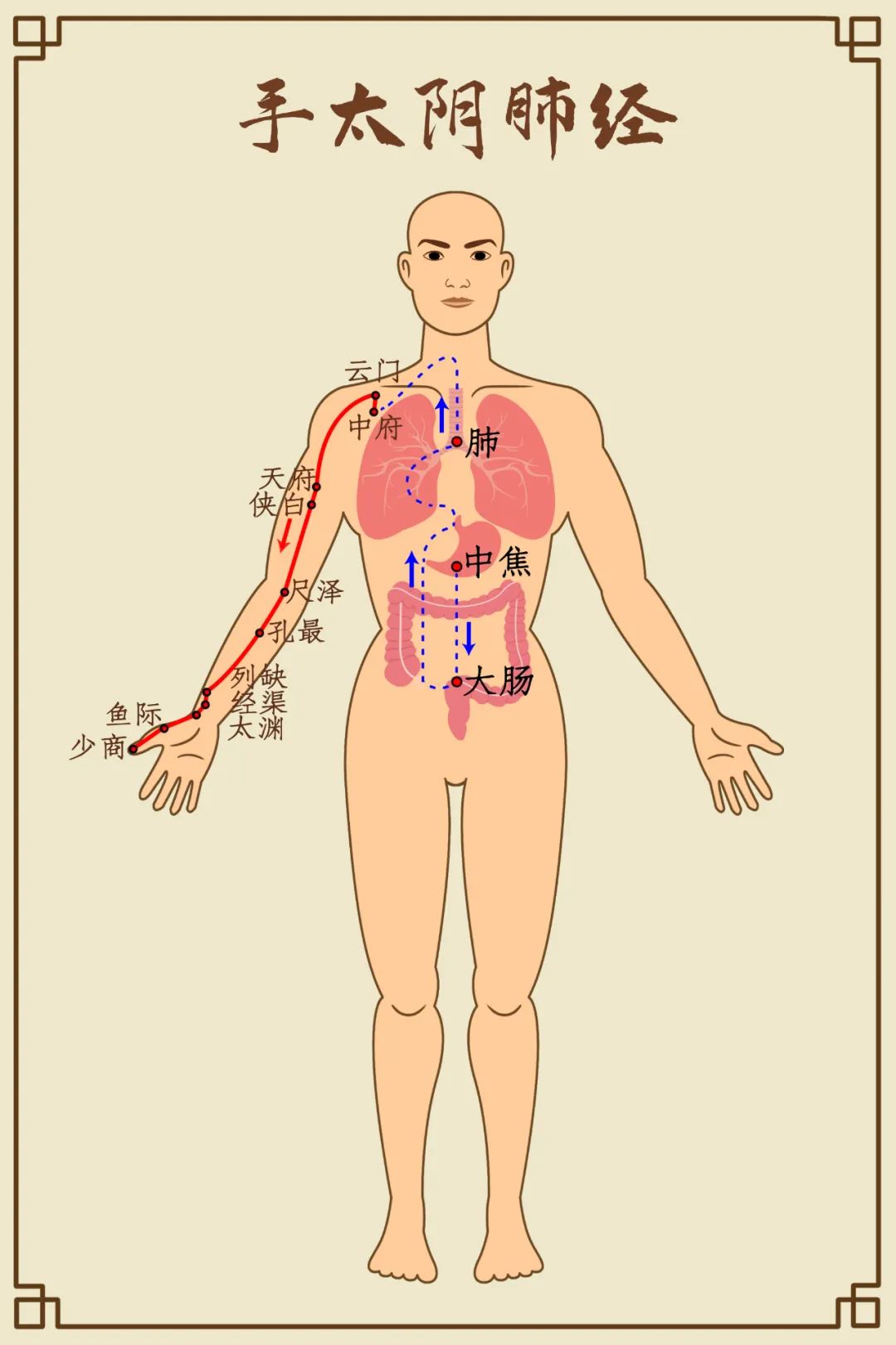 云门穴之所以得名“云”,就是因为它是肺经与其他经络交换物质的一个门户, 是气体宣发的地方。
